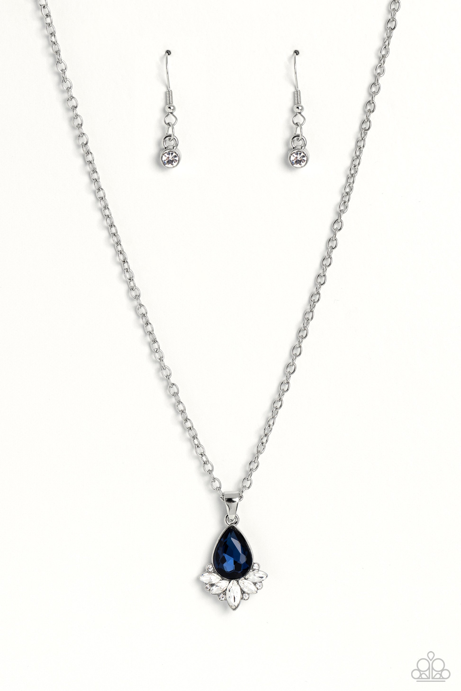 Expanding out from a solitaire blue teardrop gem, a fringe of dainty marquise-cut and round-cut white gems and rhinestones shimmers and shines for a refined display of elegance. Features an adjustable clasp closure.